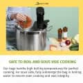 OutOfAir ensures food safety and consistent, flavorful foods with sous vide cooking, cooking vacuum sealed food in water at a precisely controlled temperature.