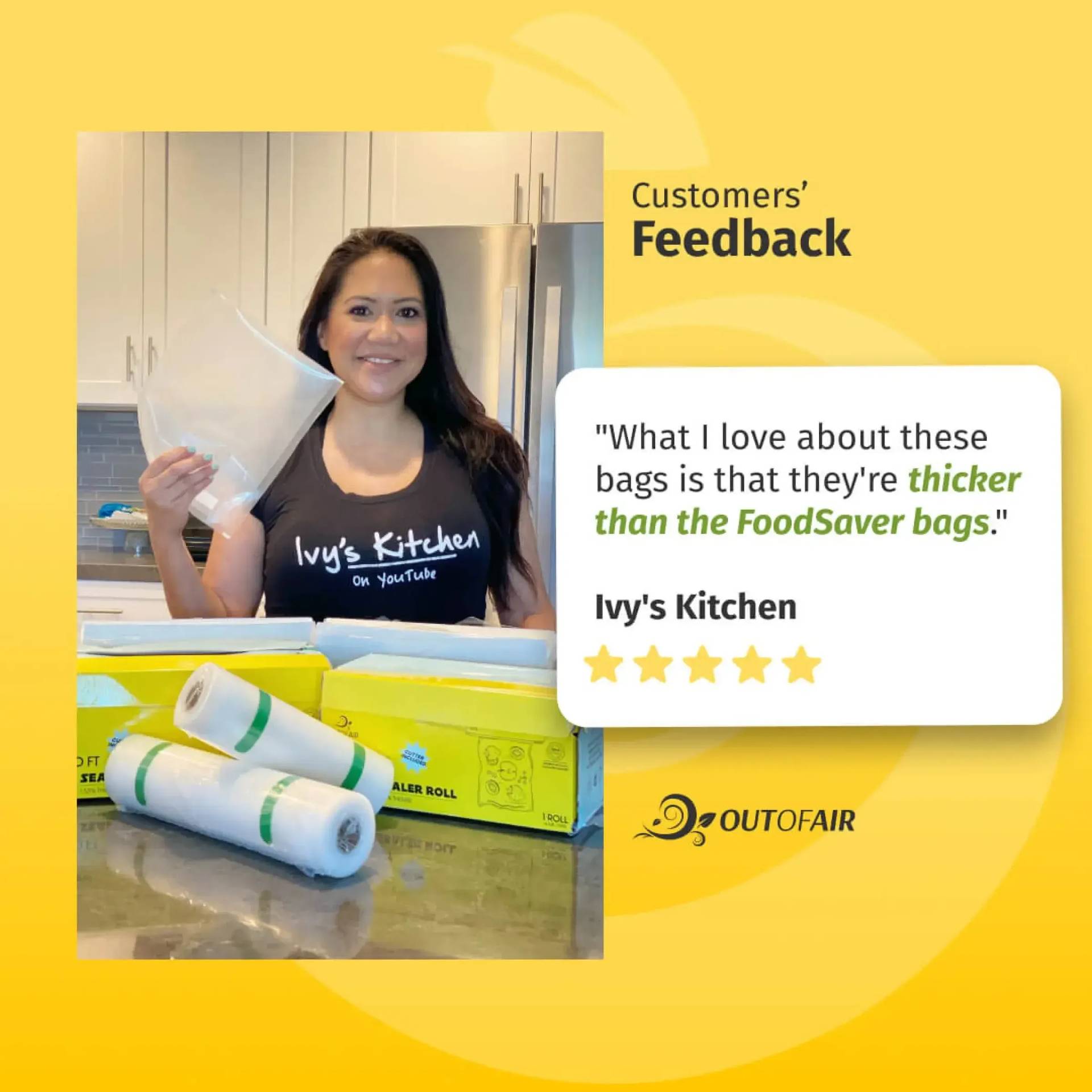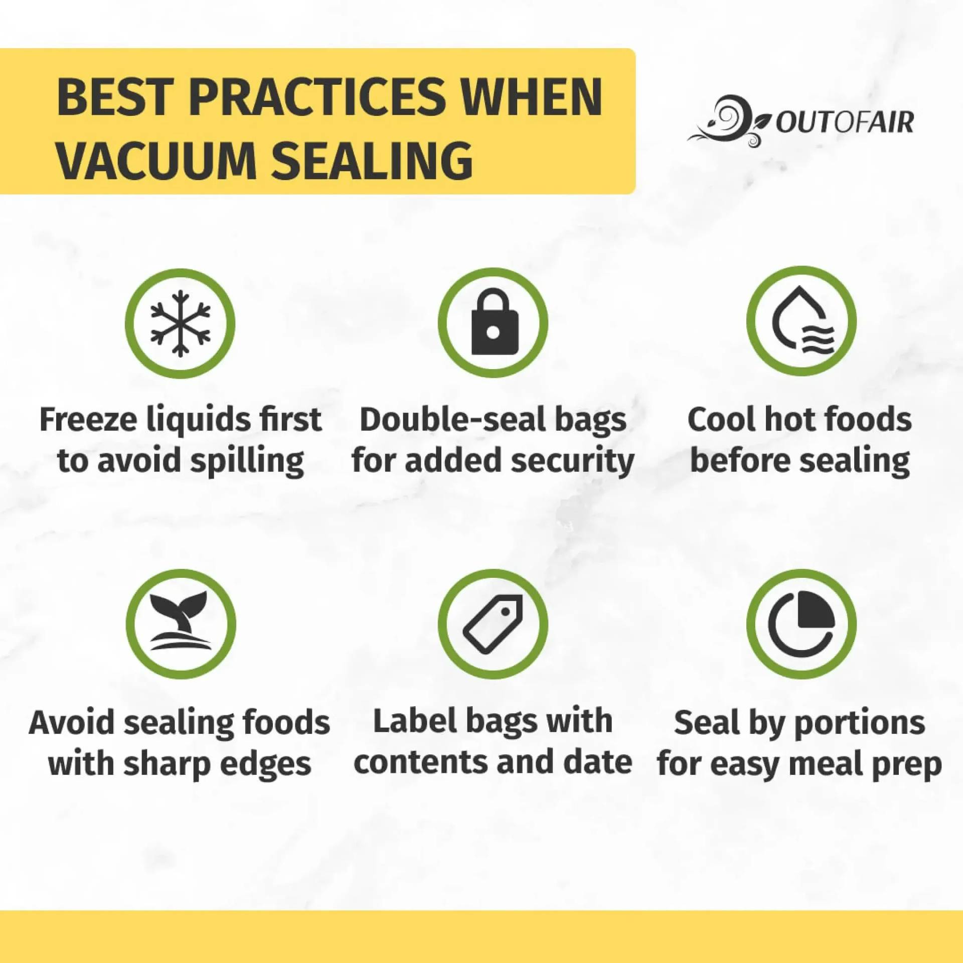 OutOfAir vacuum sealer bags minimize food waste, extend the shelf life of your cooked meals, and offer convenience and practicality in the kitchen, allowing you to prepare meals ahead of time.